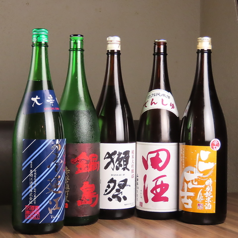 獺祭や田中六五など福岡産を中心に九州銘酒多数。鍋との相性も抜群でお酒が進みます。