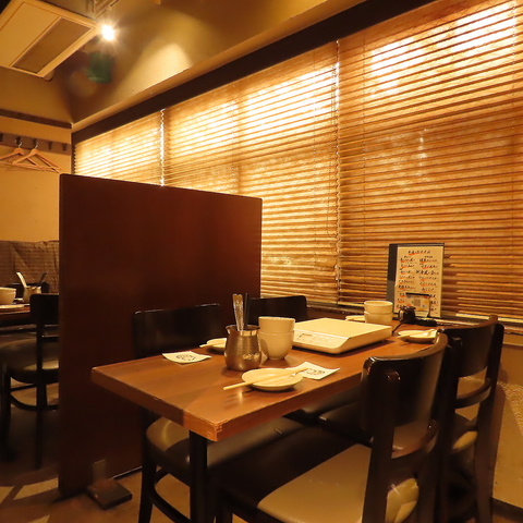 温かみのある木目調の店内には、グループ利用にぴったりな4人掛けのテーブル席をご用意。ゆったりとした距離感で、鍋を囲んでわいわいと会話が弾む空間です。ご友人との集まりや少人数の宴会におすすめ。