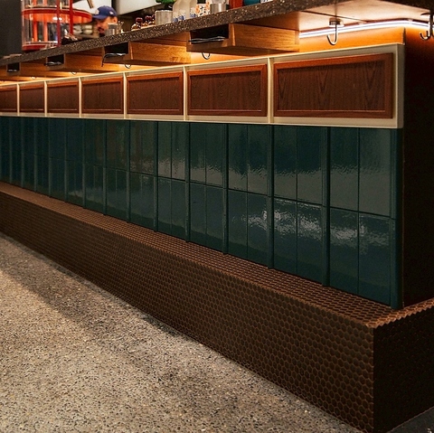 当店のカウンター席は、横丁の賑わいを間近に感じられる特等席。椅子は「CARAVAN」をイメージし、横丁スタイルに合わせて高さやロゴまでこだわり抜いた特注品。実は、便利な荷物カゴ付きで、身軽にゆったりとお過ごしいただけます。試行錯誤を重ねたオールインワンチェアで、ここだけの特別な時間をお楽しみください。
