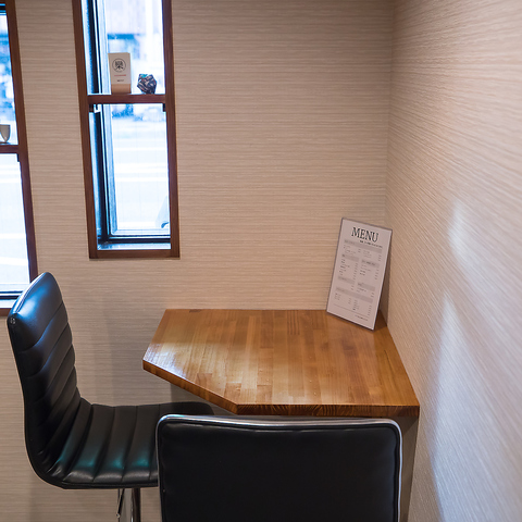 会話をじっくり楽しみたい方には、落ち着いた雰囲気のテーブル席をご用意。2名様用のテーブルが1つあり、デートや親しい方との食事に最適です。