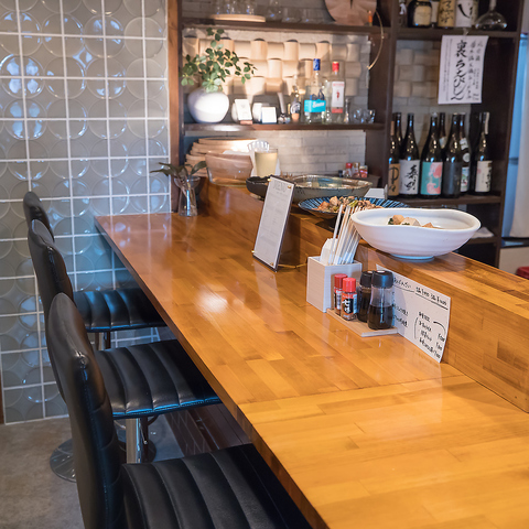 お仕事帰りにふらっと立ち寄るなら、カウンター席がおすすめ。全8席あり、お一人様でも気兼ねなく、美味しい料理とお酒をサクッと楽しめます♪