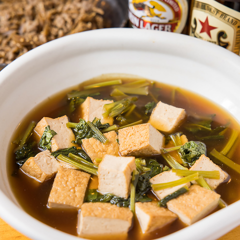 当店自慢の「おばんざい」は、毎日心を込めて手作りしています。和洋中とバランス良く、常時3~5種類の豊富なラインナップをご用意!どのメニューも、日替わりで旬の素材をふんだんに使用しており、どこか懐かしく、そしてちょっぴり贅沢な家庭の味わいは、お酒と共にゆっくりと楽しむのに最適です♪