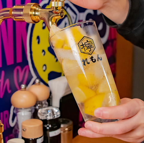 10分110円の飲み放題で、レモンサワーが自由に楽しめます!彩り豊かなフルーツもトッピングOK!