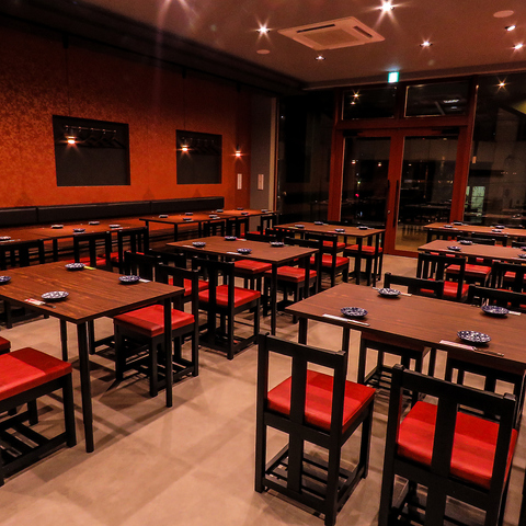 全席テーブル席になります。組み合わせ比較的自由です。少人数~大人数もOKです。貸切は40人~50人程度ご相談ください。