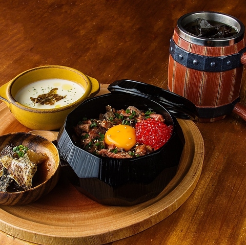 【セット内容】ローストビーフ重、ポタージュ、鯛皮のパリ揚げポン酢、サラダ、ソフドリ/+350円(税込)でいくらトッピング