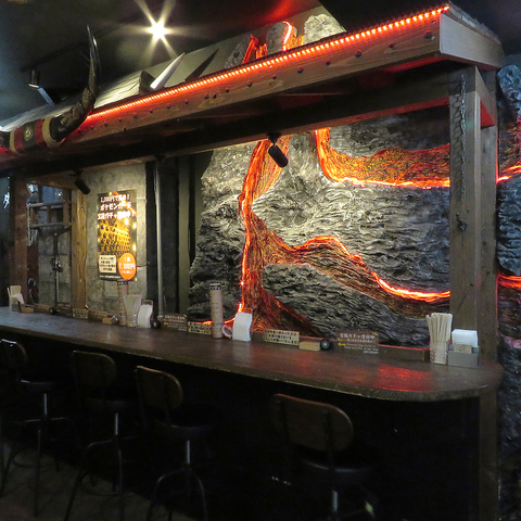 【ダンジョンに迷い込んだような世界!】店内のあちらこちらには、火山や氷山をイメージしたダイナミックな装飾が施され、まさにダンジョンに足を踏み入れたかのような壮大な世界観が広がります。細部にまでこだわった作り込みは、五感を刺激し、まるでゲームの主人公になったかのような気分にさせてくれます。