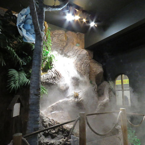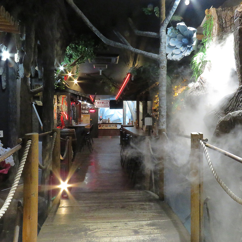 【遊園地のアトラクション級!】店内に足を踏み入れると、目の前に広がるのは壮大な滝!まるで遊園地のアトラクションに迷い込んだかのような、圧倒的な臨場感に包まれます。視覚から楽しませるこの仕掛けは、まさに冒険の始まりにふさわしい演出です。日常を忘れ、非日常の世界に没入できること間違いなし!