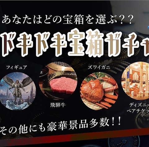ドキドキ宝物ガチャで心躍る体験を!ドリーム宝箱ガチャ(2000円)や、子ども向けのちびっこワクワク宝箱ガチャ(1000円)が揃い、2つがセットになったお得なファミリー宝箱セット(2500円)もご用意!フィギュアや飛騨牛、ズワイガニ、テーマパークペアチケットなど豪華な景品が盛りだくさん★※全て税込み