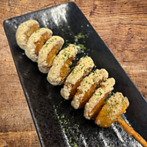竹炭を練り込んだ黒いバンズが、まるで魔界の門を思わせるインパクト!香ばしく焼き上げたソーセージのジューシーさと、見た目の迫力が冒険心を刺激します。食べ歩きにもぴったりな“異世界グルメ”をぜひ体験してください◎