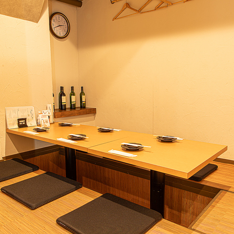 和の雰囲気漂う落ち着く空間。座敷席もあり少人数でのご利用にぴったりです。足を伸ばしてゆっくり寛げる♪