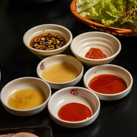 サムギョプサルには黄金のタレだ!牛肉、鶏肉や野菜にも!こだわりタレが並ぶとワクワク感が止まらない!!
