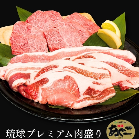 沖縄県産黒毛和牛とあぐー豚を贅沢に盛り合わせた、当店自慢の一皿。沖縄に来たなら是非オススメです!!