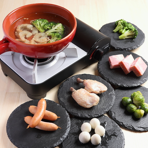 【アヒージョを楽しんでいただけるこだわり】ベースのオイルや具材は自分好みにカスタマイズ可能◎豚バラや黒毛和牛など、肉の旨味を引き出す具材をご用意。オイルとの組み合わせで、まったく違った味わいが楽しめるのも魅力です。食べ終えた後は、残った旨味オイルに特製和風だしを注ぎ、しゃぶしゃぶ風スープに。〆にはぜひパスタを♪