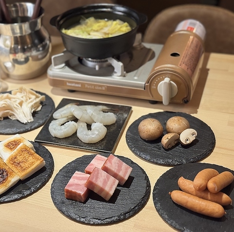 気メニューをバランスよく楽しめる満足コース!出汁巻き卵、野菜グリル、ミニ鉄板もんじゃ、豚バラマスタード焼きなどを一品ずつ提供。〆は和風パスタ&アイス付き。