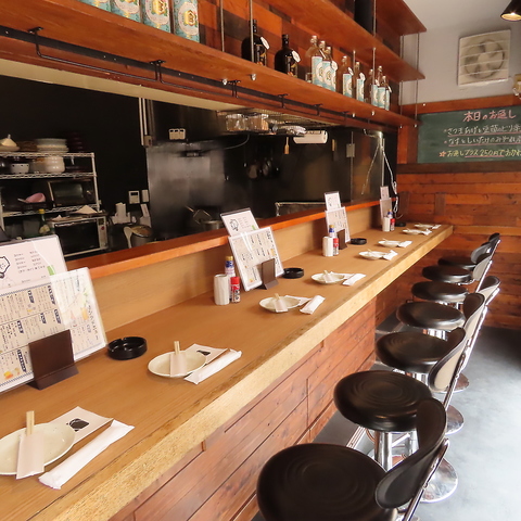 【◇落ち着きのある和風空間◇】店内に入れば、木目調で落ち着いた雰囲気が広がり、一人でしっぽりと愉しむことはもちろん、お仲間同士で話しながら愉しむにもピッタリの空間です。お一人様や少人数に最適なカウンター席を8席、ちょっとした飲み会に最適なテーブル席を2卓ご用意しております!