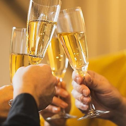 お料理とご一緒に楽しめる、2時間飲み放題付きコースをご用意しています。乾杯にぴったりのスパークリングワインをはじめ、ビール、ワイン、ソフトドリンクなど、10種類以上の豊富なドリンクを心ゆくまでお楽しみいただけます。各種ご宴会やパーティーにぜひご利用ください。