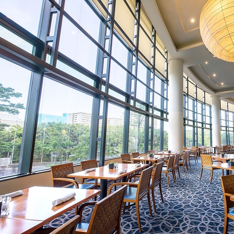 【開放感あふれるモダンな空間】テーブル席は全96席。吹き抜け窓から暖かな自然光が降り注ぎ、洗練されていながらもゆったりとした雰囲気です◎広々とした空間は日頃の喧騒を忘れさせてくれるかのようで、穏やかなお食事の席を演出します。レジャーやショッピングの合間にも、ゆったりとホテルグルメをご堪能くださいませ♪