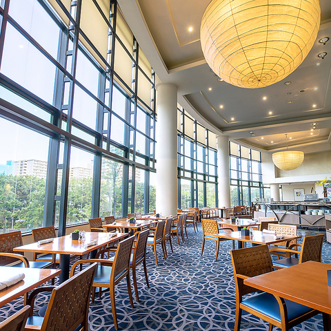 【水と緑に癒される絶景レストラン】グランドプリンスホテル大阪ベイ内の当レストラン。窓の外にはウォーターガーデンとチャペル「エタニティ」を望み、都心のオアシスのような緑豊かな景色を眺めながらお食事を楽しめます。国際色豊かな絶品料理の数々を味わいながら、静かな時間が流れるお席で心ゆくまでお寛ぎください◎