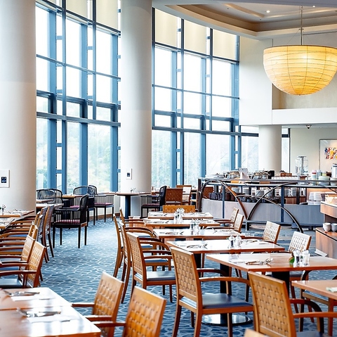 【開放感あふれるモダンな空間】テーブル席は全96席。吹き抜け窓から暖かな自然光が降り注ぎ、洗練されていながらもゆったりとした雰囲気です◎広々とした空間は日頃の喧騒を忘れさせてくれるかのようで、穏やかなお食事の席を演出します。レジャーやショッピングの合間にも、ゆったりとホテルグルメをご堪能くださいませ♪