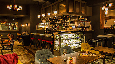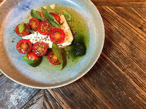 開放感ある扉から一歩足を踏み入れると、ダークブルーを基調としたシックな空間が広がります。個性的な布張りの椅子やアンティーク調のウッドテーブル、カウンターのタイル使いなど細部に至るまでにこだわり尽くした店内。デートや女子会などの幅広いシーンにぴったりなイタリアンへようこそ!