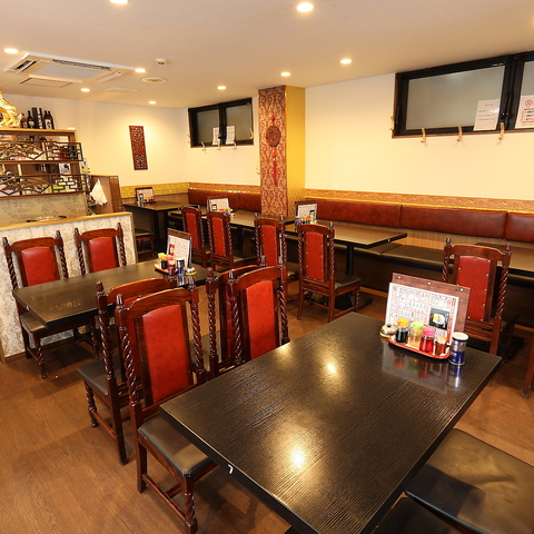 【広々とした店内は宴会にピッタリ♪】当店のテーブル席は、広々としたスペースで周囲のお席との間隔も広めに設置しており、ゆっくりと食事の時間をお楽しみいただくのに最適です。最大45名様まで、貸切のご予約も承ります。