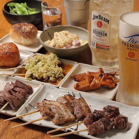 70分飲み放題付【各種集まりやご宴会にぴったり♪】サクッと焼きとんコース全8品3,000円(税込)!自慢の焼きとんをご賞味あれ!70分ラストオーダー飲み放題と、人気のればテキを含む焼きとん5種におつまみ2種、〆の焼きおにぎりまで、サクッとご利用いただけるお気軽なコースです♪