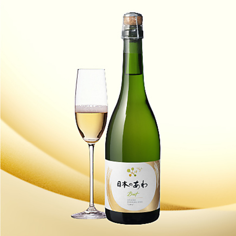 さわやかさとふくよかさを併せもつ辛口スパークリングワイン 産地:山梨県、長野県、福島県、秋田県 使用品種:甲州、シャルドネ、リースリングなど