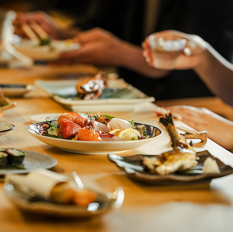 魚の美味しいと感じる要素の「見た目、香り、食感、味、余韻」を最大限に引き出した鮮魚をご堪能いただけます◇器にもこだわり、目で見てもお楽しみいただけます!海鮮と言えば日本酒。厳選した日本酒などと共に是非ご堪能ください!
