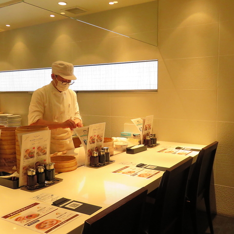 カウンター席からは職人が一つ一つ丁寧に点心を作る様子もご覧いただけます。1名さまのご来店も大歓迎!