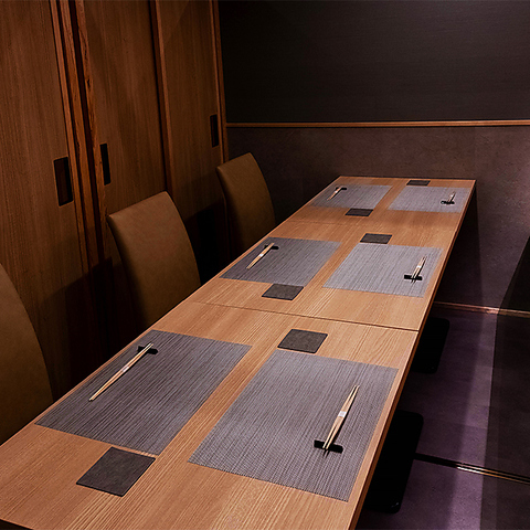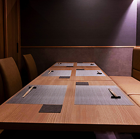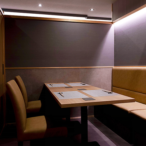 全席完全個室をご用意し、周囲を気にせずお食事に集中できる贅沢な空間を提供しています。どこか落ち着いた雰囲気の中で、大切な方との会話を楽しみながら、心ゆくまでお食事をお楽しみいただけます。接待や記念日、特別な瞬間を過ごすには最適◎和やかな雰囲気の中でお料理を堪能し、心温まる時間ををお過ごしください。