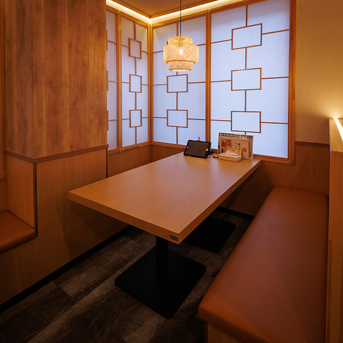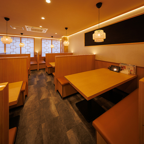 最大100名様でも悠々座れて参加者全員を見渡せる宴会向き個室も完備。少人数で使える個室も多数。宴会はお気軽にご相談下さい。落ち着いた色味と照明の柔らかな灯りが艶やかな和空間。新宿店限定の3h飲み放題付きコースもリーズナブルに取り揃えておりますので是非ご利用ください。