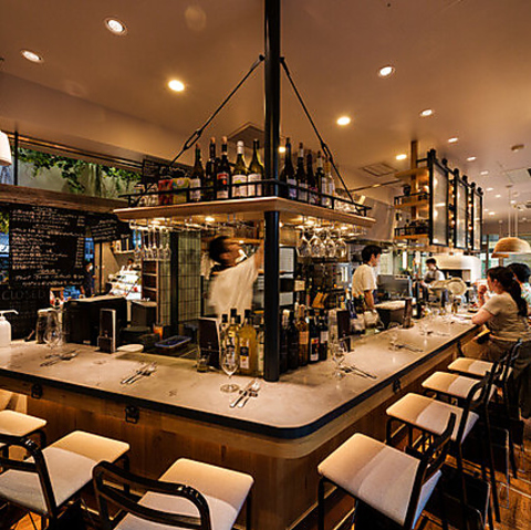 キッチンが目の前に!ライブ感が感じられるカウンター席おすすめです!おしゃべり好きのスタッフとも楽しい会話ができるのもTOSCANAの醍醐味!※テーブル席やテラス席もご用意しております。