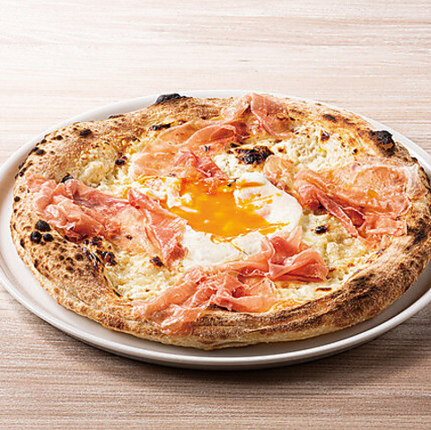 賞味期限5分のとろける生ハムピッツァは、極上の生ハムと新鮮なサラダが絶妙に絡み合う逸品。サクサクの生地にトマトソースの酸味が広がり、香ばしさと旨みが一体となります。目の前でとろける生ハムの贅沢な味わいを、ぜひその瞬間にお楽しみください。食べる瞬間が待ち遠しい、至福の一皿です。