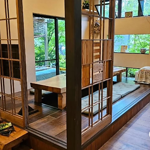 靴を脱いでリラックスでき、ゆったりとした時間を過ごすことができます。窓から自然光が差し込み、心地よい風景を眺めながら、家族や友人と心温まる会話を楽しむのに最適です。日本文化を感じながら特別なひとときを過ごせる場所です。