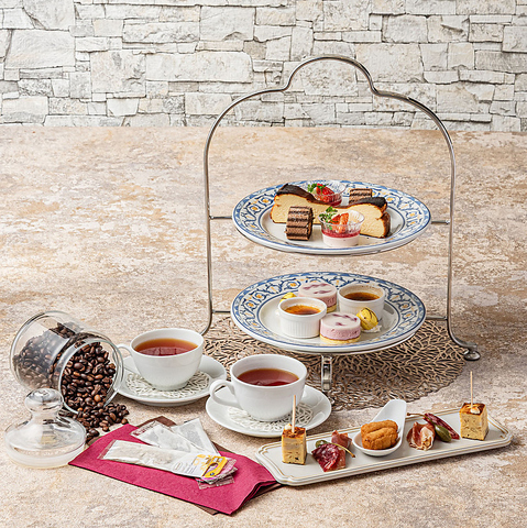 旬のフルーツや、ピンチョスやタパスなどのスペイン人気メニューをのせたアフタヌーンティーセットです。
