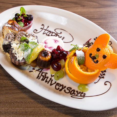 お誕生日やお祝いのサプライズにぴったりのメッセージ付きのデザートプレートをご用意可能です!お気軽にご相談下さい◎