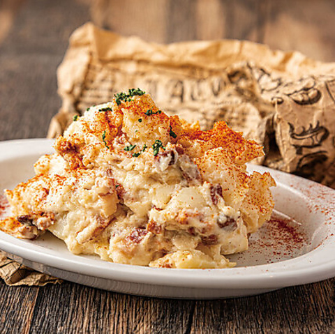 炒めたイベリコ豚のベーコンが入ったスペイン風の自家製ポテトサラダはやみつき間違いなし!
