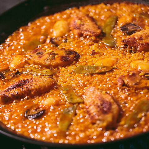 Lサイズ(3~4名分)6468円(税込)パエリア発祥の地バレンシアを代表的するパエリア。ウサギや鶏肉の旨味を米にうつしインゲンなどの食材を加えるのがバレンシア風。