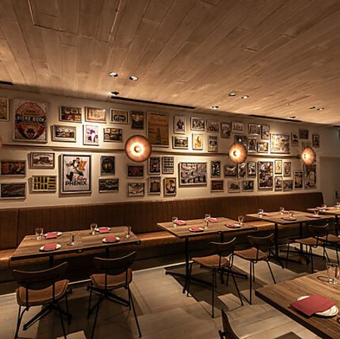 スカイビルを望む夜景が楽しめる窓側席など様々な席をご用意してます!木のぬくもりを感じさせる暖かみのある店内はご友人やご家族で気兼ねなくご来店下さい。