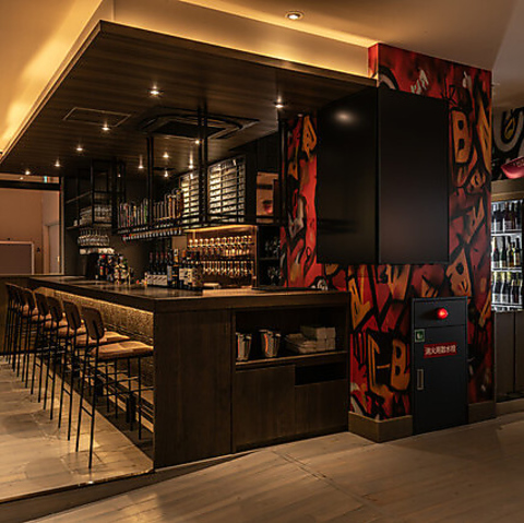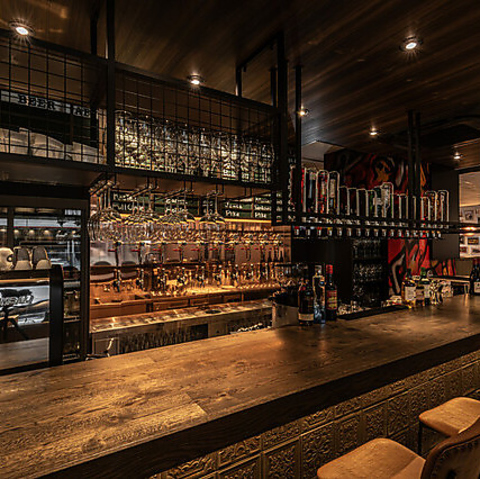 専用カウンターでカットするシェフのライブ調理やお一人でも気軽に立ち寄れるバーカウンターを設置!一人でも気軽に世界のクラフトビールが楽しめるカウンター席◎