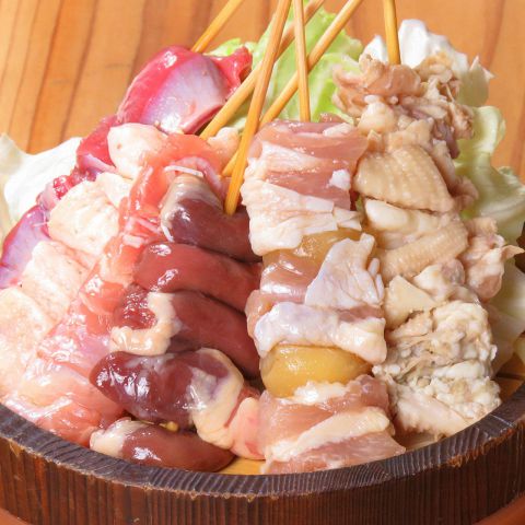 厳選した新鮮な国産若鶏の首皮のみ使用。こだわり抜いた職人の仕込み、ねじり皮の巻き方が美味しさの秘密。さらに3回炙ることにより、余分な油を落とし、旨味を中に閉じ込めました。今までに食べたことのないねじり皮との出会いをお愉しみ下さい。