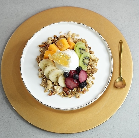 地元浜松のいなさ牛乳を使用した自家製ヨーグルトに新鮮なフルーツをどーんとトッピングした一品です。さっぱりクリーミーなヨーグルトがフルーツの自然な甘さと爽やかさを引き立て、程よいハーモニーを楽しめます。
