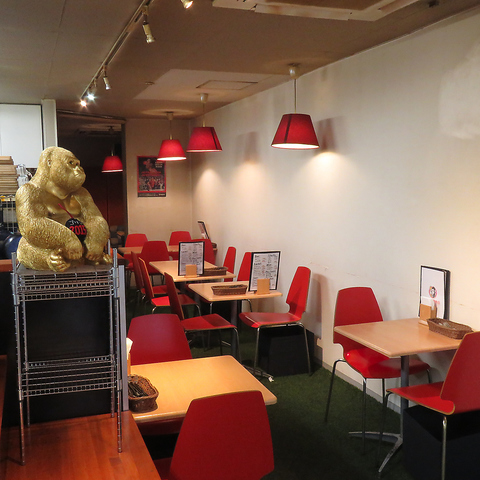 赤が差し色の店内は、おしゃれながらもカジュアルで雰囲気◎少人数から貸切まで。ご宴会にもプライベートのお食事にもぴったりです。