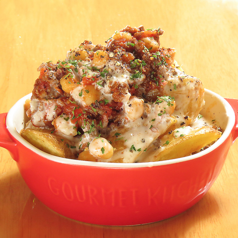 山盛りポテトに具材がたっぷり シェアにも良き! ※プラス320円(税込)でバゲット4枚つけられます。