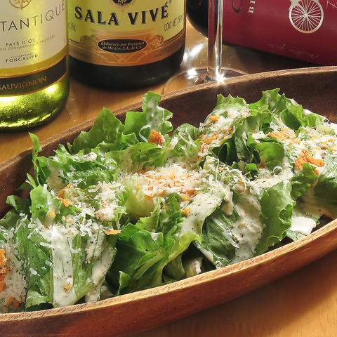 新鮮なロメインレタス、温玉、パルミジャーノ!ゴリラ定番サラダ!