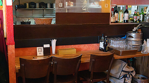 お一人様でも気軽に立ち寄れるカウンター席をご用意しております。目の前には活気ある厨房が広がり、料理人たちの手さばきや香ばしい香りが食欲をそそります。ランチタイムのサクッと食事や、仕事帰りの一杯にもおすすめです。