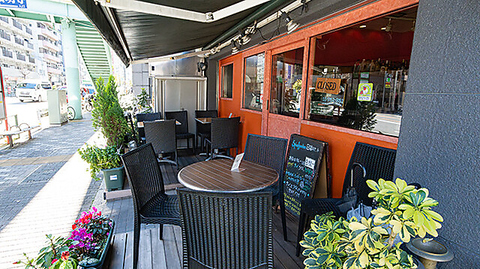 開放感あふれるテラス席では、心地よい風を感じながらお食事ができます。喫煙も可能ですので、お食事とともに一服したい方にも最適です。晴れた日には、外の景色を眺めながらリラックスしたひとときをお過ごしください。