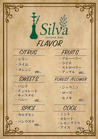 各種フレーバー充実しています!シーシャが初めてという方でもご安心ください♪お好みの味をもとにスタッフがブレンドさせて頂きます!※当店の物品を破損された場合はいかなる場合でも弁償代として5万~をご請求いたします。
