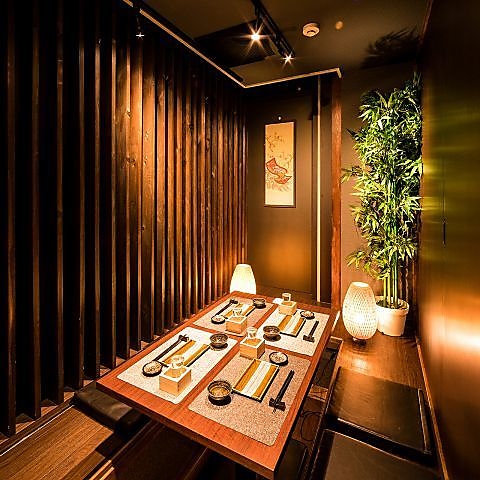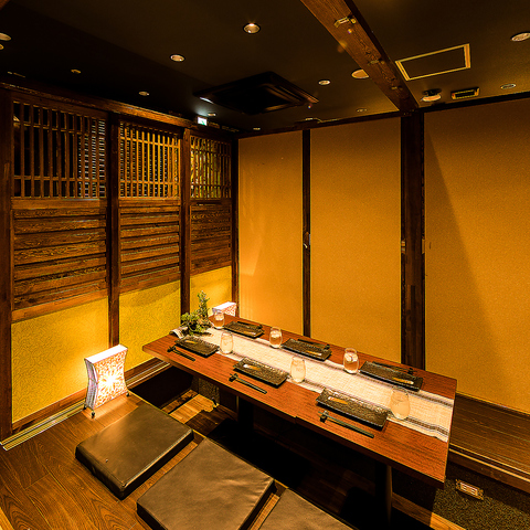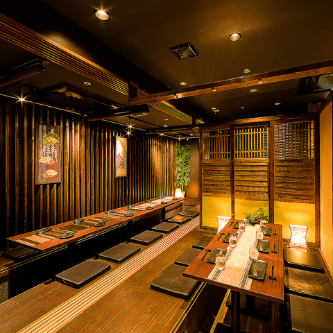 当店は扉付の完全個室へご案内可能となっております。大型団体様のご利用も、扉付のご宴会席を設けておりますので、お気軽にお申し付け下さい!店内は落ち着いた和風の雰囲気が漂い、一緒に過ごす方々との絆を深めるには最適な空間です。美味しい料理と心地良い空間で、皆様の思い出作りをお手伝いさせていただきます♪