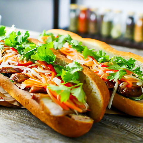 日本でも人気が高まっている「バインミー」。ベトナム発のサンドイッチで、軽めのフランスパンにハムやなます、香味野菜などをたっぷり挟むのが特徴です♪ランチにてご提供しております☆
